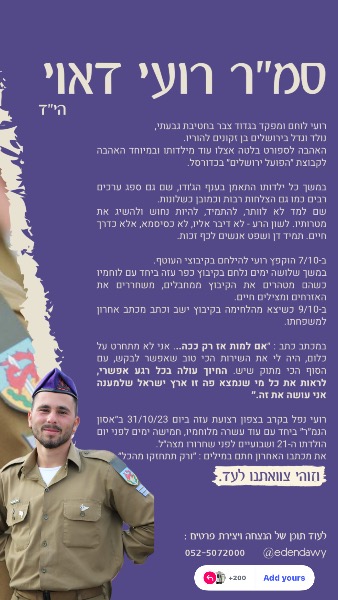 נפל ביום ט"ז בחשון תשפ"ד 31.10.2023